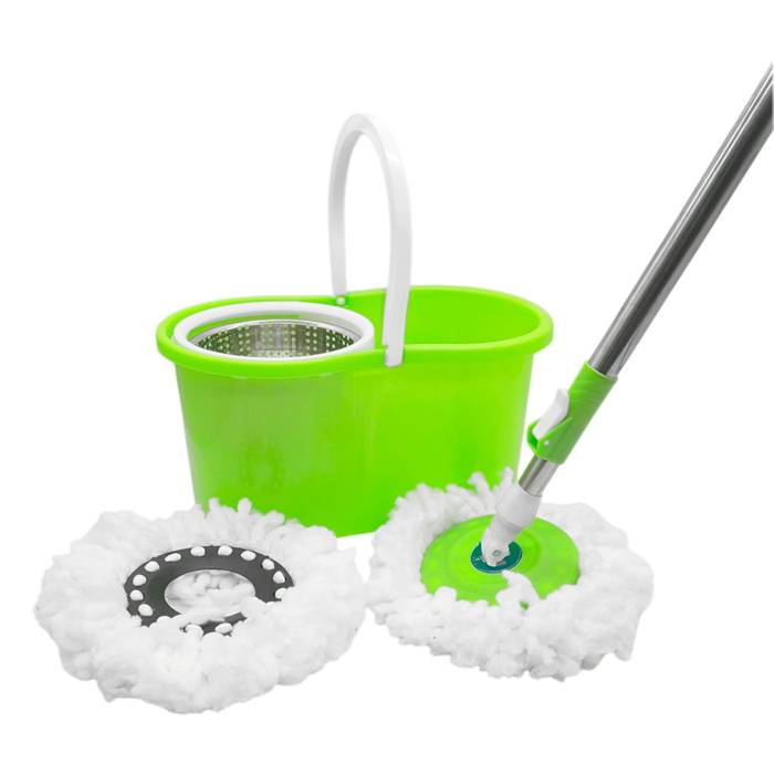 Mopa de algodón y balde plástico con sistema centrífugo.